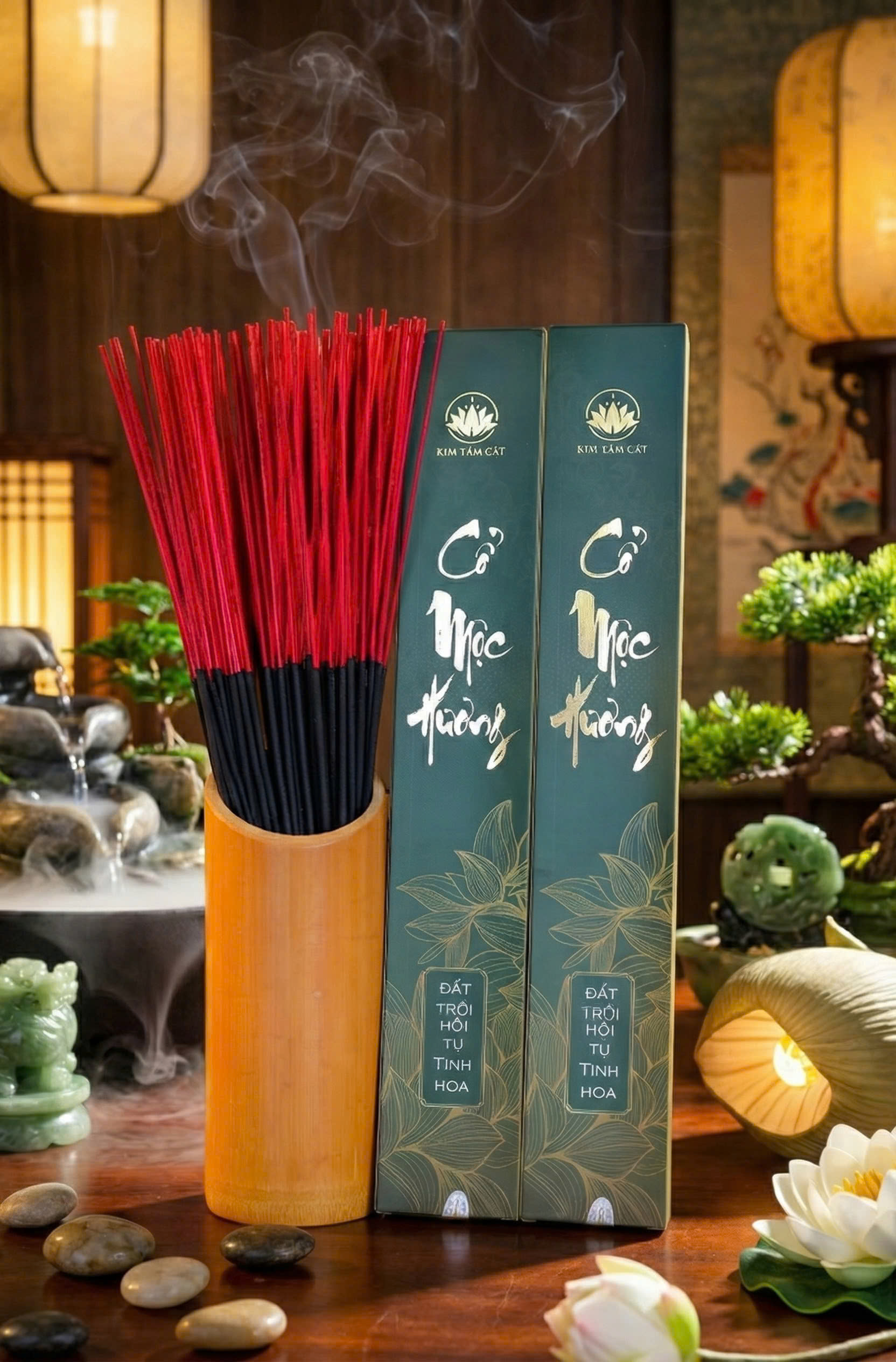 Nhang Cổ Mộc Hương – Kim Tâm Cát là dòng nhang thượng hạng cao cấp, được tạo nên từ 100% cổ dược và thảo mộc thiên nhiên quý hiếm, mang đậm tinh thần thuần khiết – an lành – chuẩn phong tục thờ cúng của người Việt.